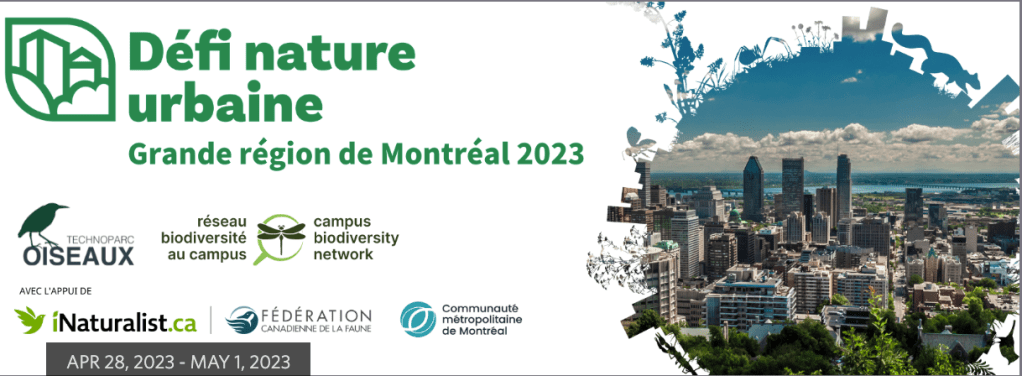 - All iNaturalist observations will automatically count for the Greater Montreal project if taken within Greater Montreal over the four days of the challenge (and submitted on or before May 4).